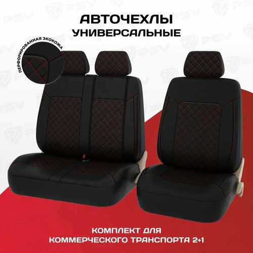 Купить Чехлы в машину на сиденья для коммерческого транспорта PSV Elegant Next TRANSIT (Черный/Ромб красный/отстрочка красная) с доставкой по всей России.