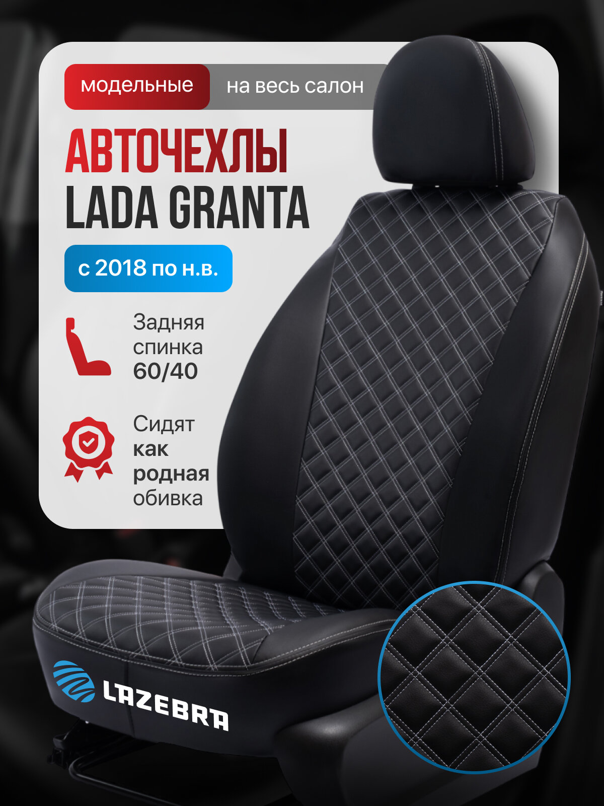 Чехлы в машину Лада Гранта 2018-н. в. спинка раздельная «Двойной ромб белый»: сравнение цен, характеристики, фото, актуальное наличие и цены.