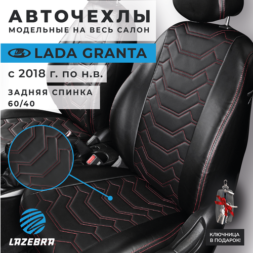 Купить Чехлы в машину Лада Гранта 2018-н. в. спинка раздельная Трансформер красный с доставкой по всей России.