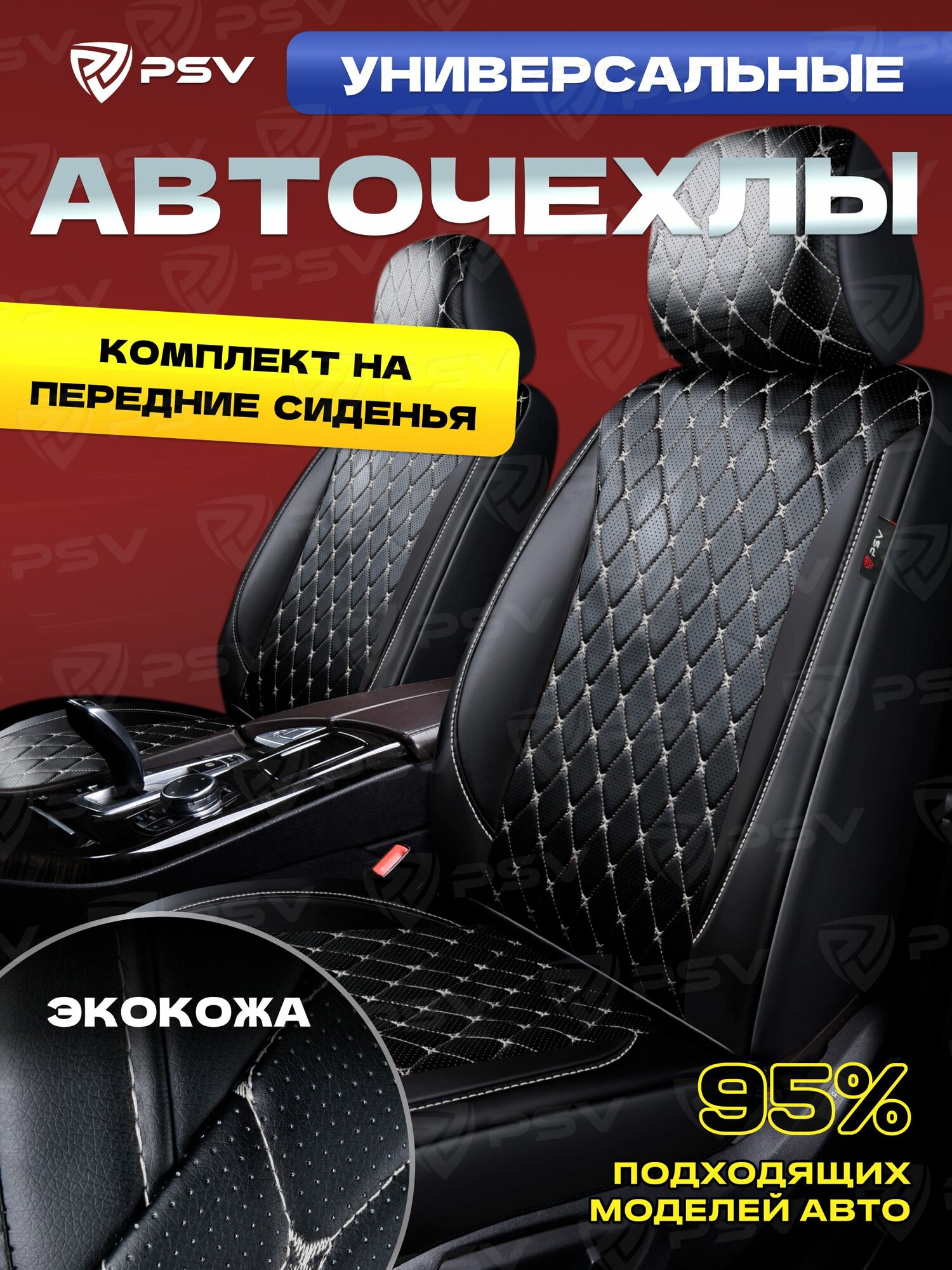 Чехлы на сиденья автомобильные в машину на передние сиденья универсальные PSV Graf Next 2 FRONT (Черный/Ромб белый «Бабочка»/отстрочка белая), ромб + экокожа: сравнение цен, характеристики, фото, актуальное наличие и цены.