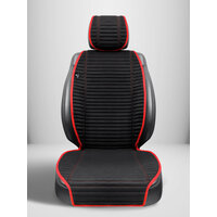 Купить Чехлы в машину на сиденья универсальные в салон. 2 шт. Модель L POLOSA. Черный/красный кант с доставкой по всей России.