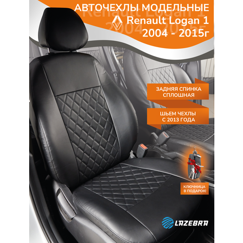 Авточехлы Российского бренда Lazebra - комплект на весь салон Renault Logan 1 со сплошной спинкой 2004, 2005, 2006, 2007, 2008, 2009, 2010, 2011, 2012, 2013, 2014 года выпуска. Авто чехлы в машину выполнены из приятной премиальной экокожи , высокого качества толщиной 0,8мм. Материал триплирован поролоном 2 мм , чехол поэтому приобретает дополнительную мягкость Сшиты строго по лекалам сиденья Обратите внимание!- НЕ предусмотрены отверстия под подголовники. Мы специально не делаем отверстий, для того, чтобы чехлы выглядели наиболее привлекательно. Их сделать легко: этот процесс есть в инструкции по установке. Когда вы заправите кожу под заглушку разрезы не будет видно