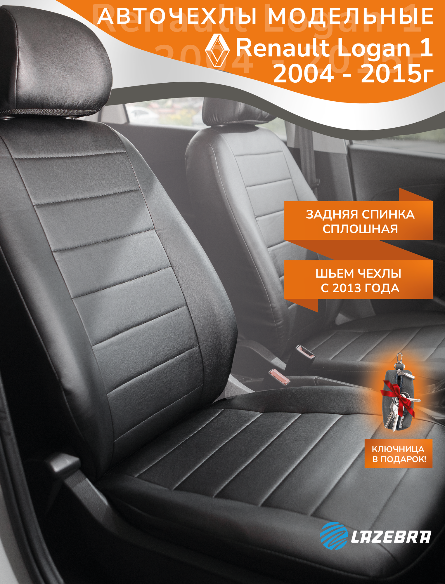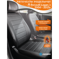 Авточехлы Российского бренда Lazebra - комплект на весь салон Renault Logan 1 со сплошной спинкой 2004, 2005, 2006, 2007, 2008, 2009, 2010, 2011, 2012, 2013, 2014 года выпуска. Авто чехлы в машину выполнены из приятной премиальной экокожи , высокого качества толщиной 0,8мм. Материал триплирован поролоном 2 мм , чехол поэтому приобретает дополнительную мягкость Сшиты строго по лекалам сиденья Обратите внимание!- НЕ предусмотрены отверстия под подголовники. Мы специально не делаем отверстий, для того, чтобы чехлы выглядели наиболее привлекательно. Их сделать легко: этот процесс есть в инструкции по установке. Когда вы заправите кожу под заглушку разрезы не будет видно