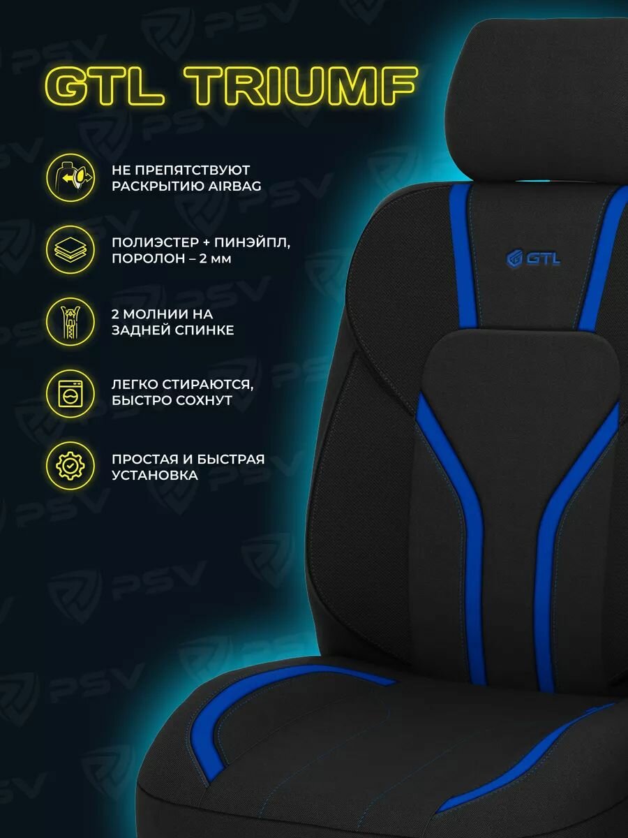 Чехлы на сиденья автомобильные в машину универсальные GTL Triumf (Черно-Синий) с боковыми поддержками, комплект на весь салон: сравнение цен, характеристики, фото, актуальное наличие и цены.