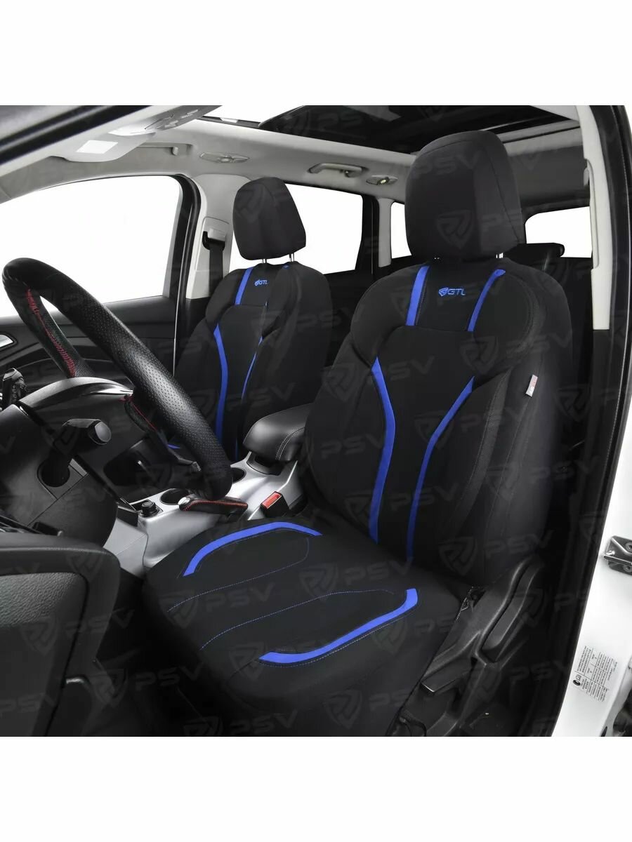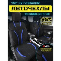 Купить Чехлы на сиденья автомобильные в машину универсальные GTL Triumf (Черно-Синий) с боковыми поддержками, комплект на весь салон с доставкой по всей России.