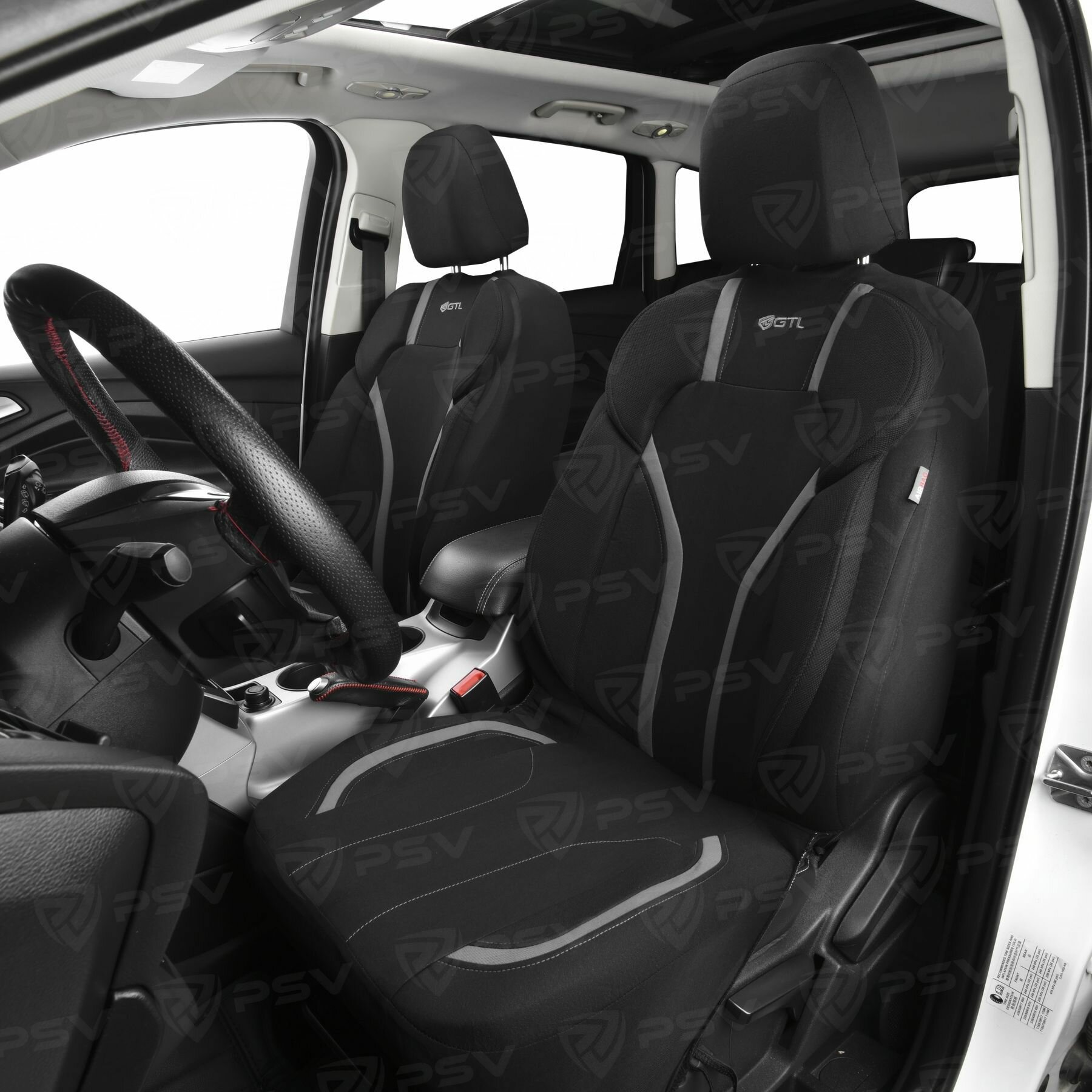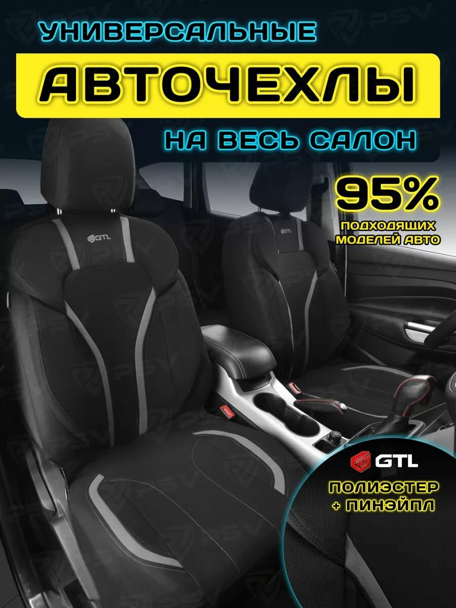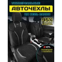 Купить Чехлы на сиденья автомобильные в машину универсальные GTL Triumf (Черно-Т. Серый) с боковыми поддержками, комплект на весь салон с доставкой по всей России.