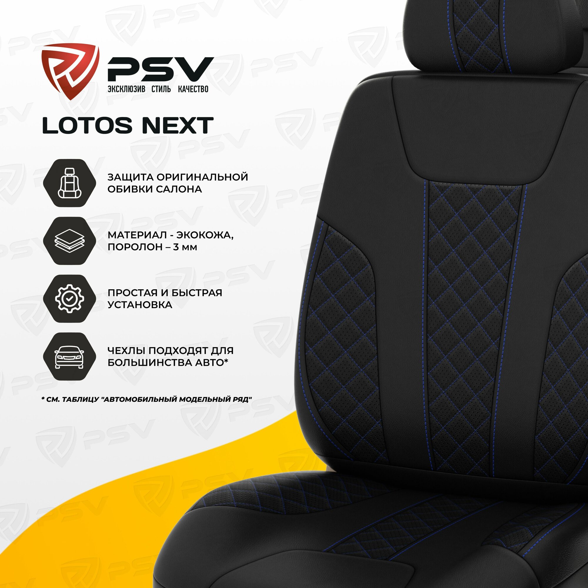 Купить Чехлы на сиденья автомобильные в машину универсальные весь салон PSV Lotos Next (Черный/Ромб синий/отстрочка синяя), экокожа с доставкой по всей России. Чехлы на сиденья автомобильные в машину универсальные весь салон PSV Lotos Next (Черный/Ромб синий/отстрочка синяя), экокожа: сравнение цен, характеристики, фото, актуальное наличие и цены.