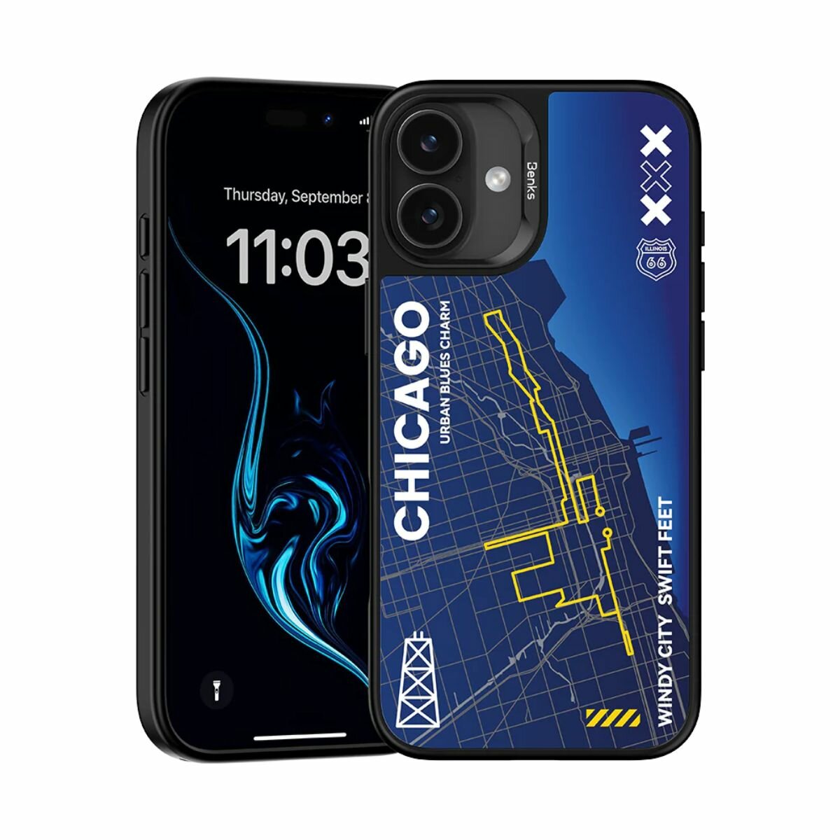 Купить Чехол Benks «Chicago Benks» для iPhone 16, принт, поликарбонат, ударопрочный, синий с доставкой по всей России.