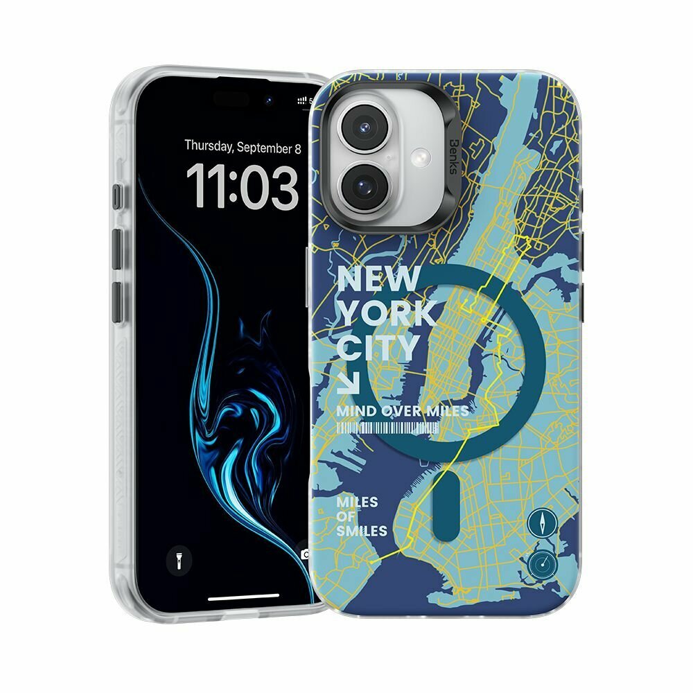Чехол силиконовый Benks Magnetic City Case (MagSafe) для iPhone 16 6.1″, принт New York: сравнение цен, характеристики, фото, актуальное наличие и цены.