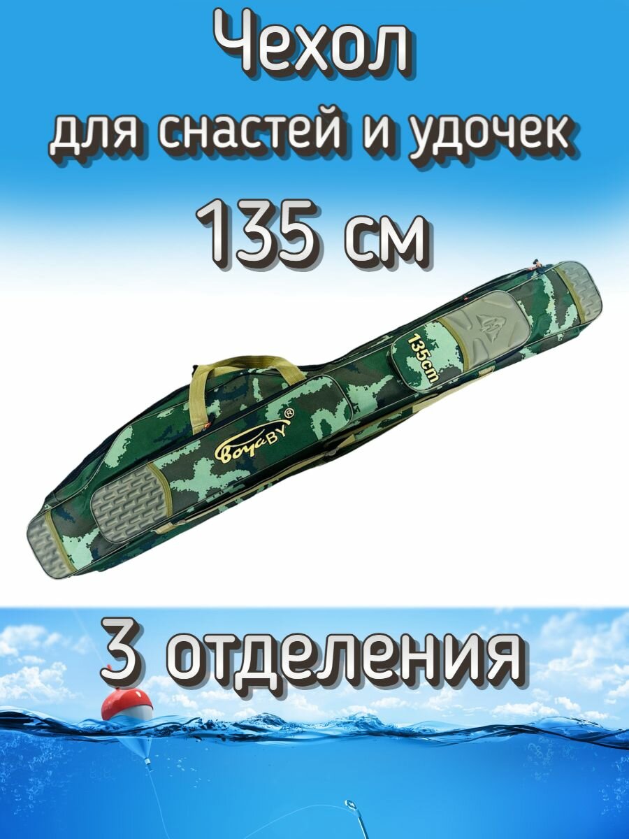 Чехол BoyaBY для снастей, удочек с 3 отделениями 135 см, зеленый (камуфляж): сравнение цен, характеристики, фото, актуальное наличие и цены.