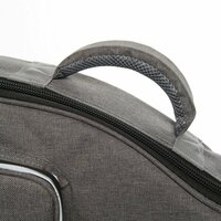 Водоотталкивающий материал плотностью 600D 4 внешних кармана для тетрадей и аксессуаров Мягкая съемная подушка под гитарный гриф Утеплитель толщиной 14мм Регулируемые плечевые ремни Мягкая ручка для удобной переноски Светоотражающие полосы для безопасности в темное время суток Резиновая пятка на дне для защиты от грязи Вышитый логотип Цвет: серый