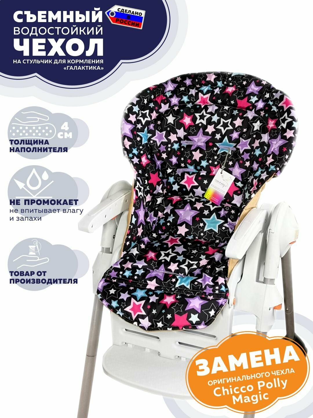 Чехол Chicco Polly Magic (Relax) «Стрекоза» на стульчик для кормления, Галактика. Водостойкий: сравнение цен, характеристики, фото, актуальное наличие и цены.
