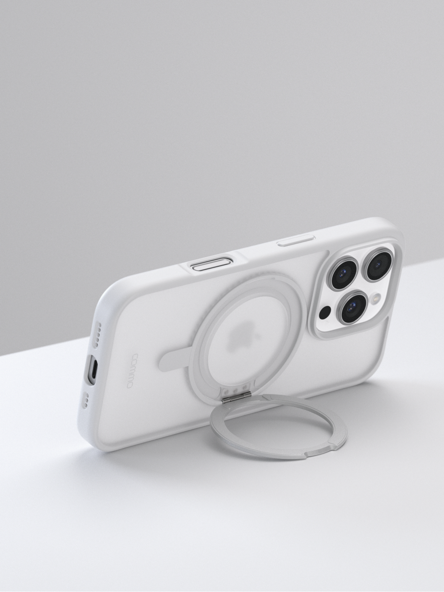 Чехол Commo Hoop с кольцом-подставкой подходит для iPhone 15 Pro с поддержкой беспроводной зарядки. Лаконичный и немаркий, он не скользит в руках, не мешает нажатию кнопок и поддерживает беспроводную зарядку.