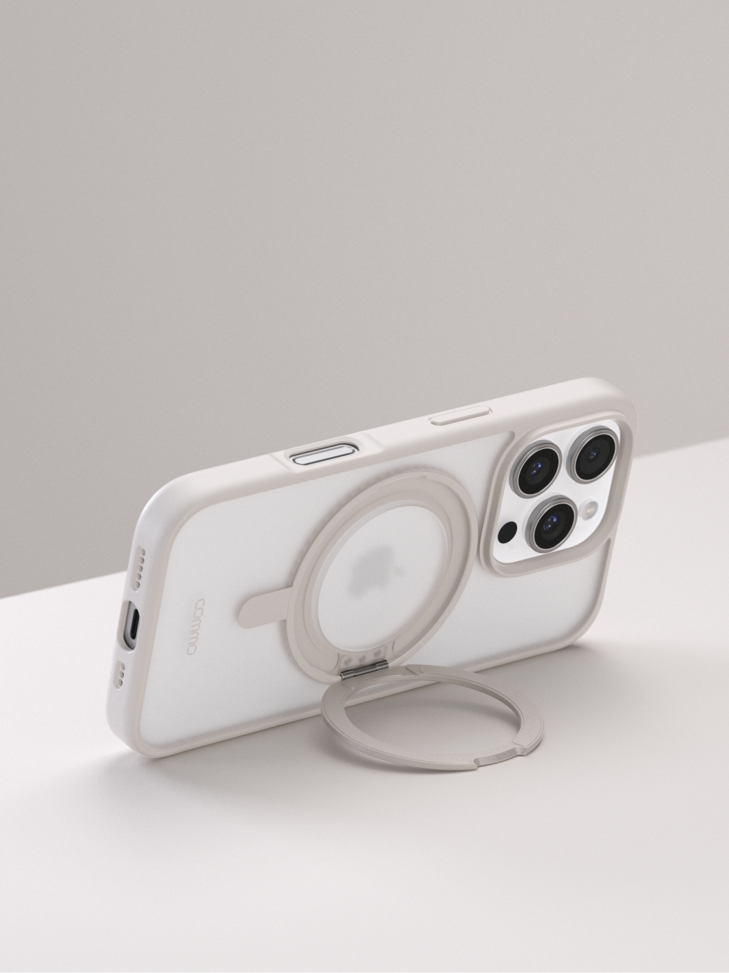 Чехол Commo Hoop с кольцом-подставкой подходит для iPhone 15 Pro с поддержкой беспроводной зарядки. Лаконичный и немаркий, он не скользит в руках, не мешает нажатию кнопок и поддерживает беспроводную зарядку.