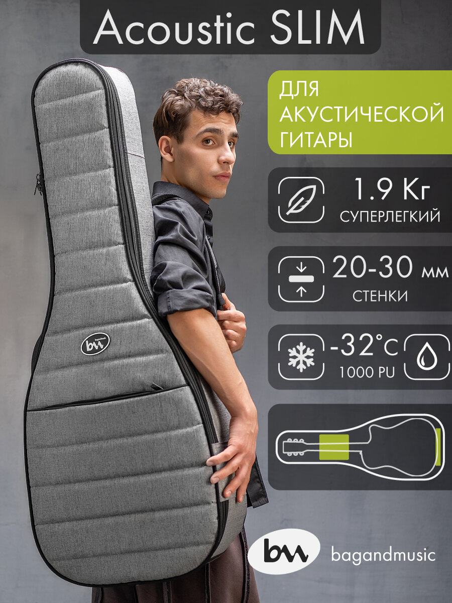 Купить Чехол для акустической гитары BAG&music Acoustic Slim (полужесткий, платиновый) с доставкой по всей России.