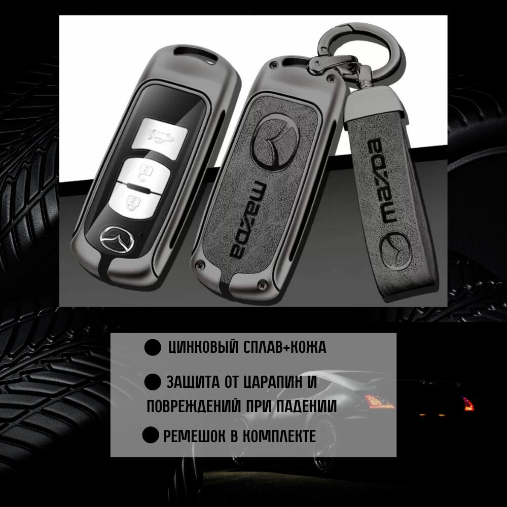Эксклюзивный стильный металлический чехол для автомобильного ключа марки Мазда. Подходит для ключей автомобиля моделей: Mazda 3, Mazda 6, CX-5, CX-8, CX-7, CX-9.