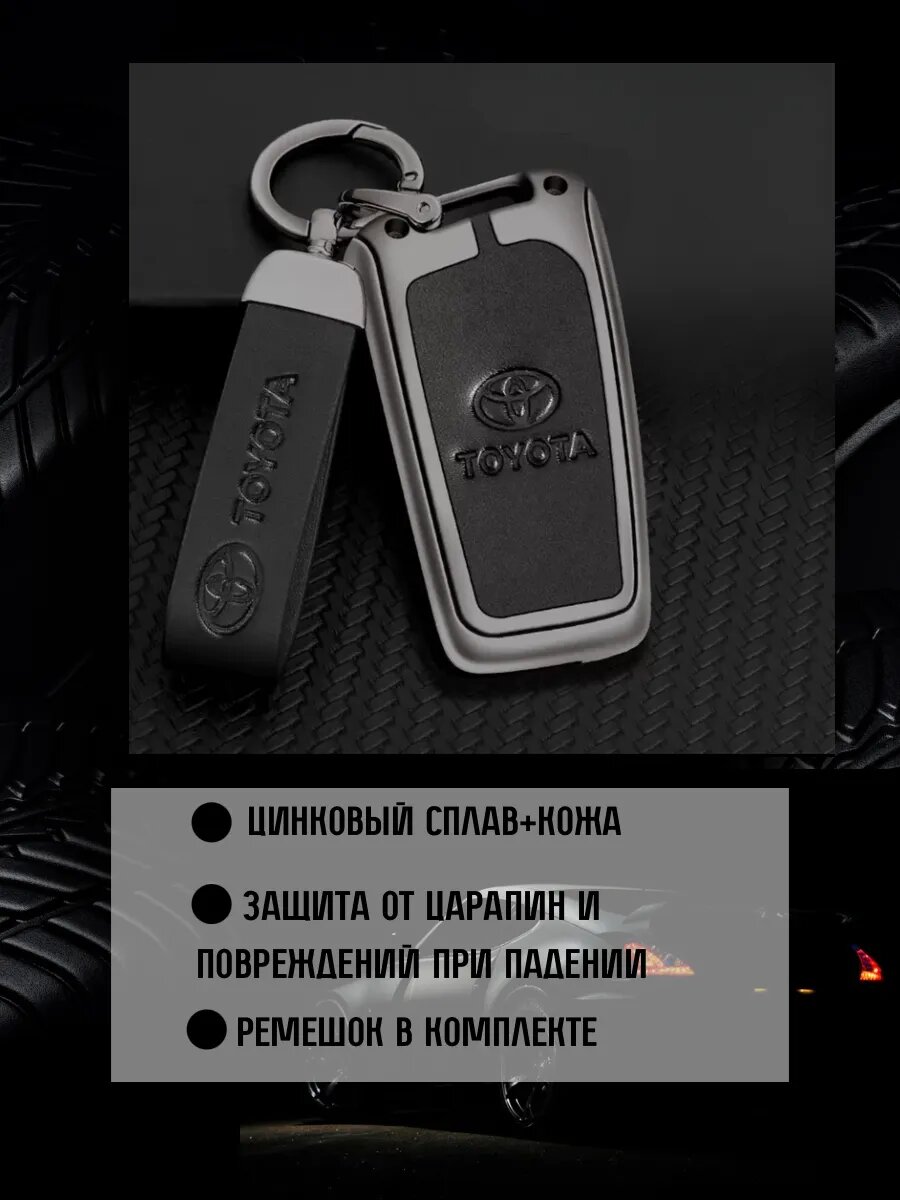 Эксклюзивный стильный металлический чехол для автомобильного ключа марки Тойота. Подходит для ключей автомобиля моделей: Toyota Prius, Camry, Corolla, Highlander, CHR, C-HR, RAV4, Land Cruiser Prado. Противоударный чехол для автомобильного ключа защитит от повреждений и идеально дополнит стиль, красоту Вашего автомобиля. Это качественный, функциональный, практичный чехол из цинкового сплава и экокожи, который предотвращает царапины, повреждения, потертости при хранении или ношении ключа. Уникальный отпечаток 3D-логотипа марки автомобиля на кожаной накладке и ремешке. Благодаря качественной отделке чехол приятно лежит в руке и не скользит. Ключ в брелок легко устанавливается.