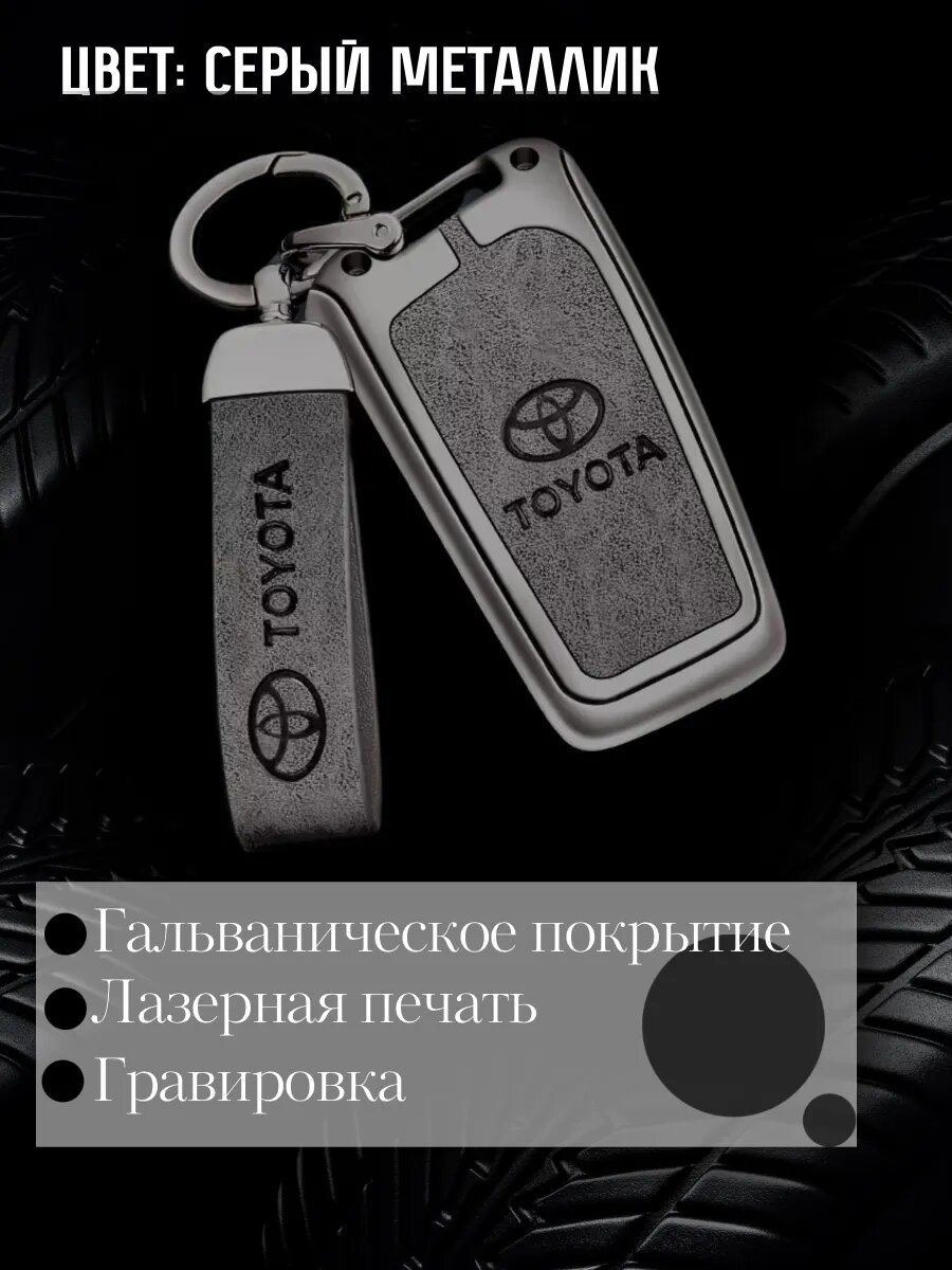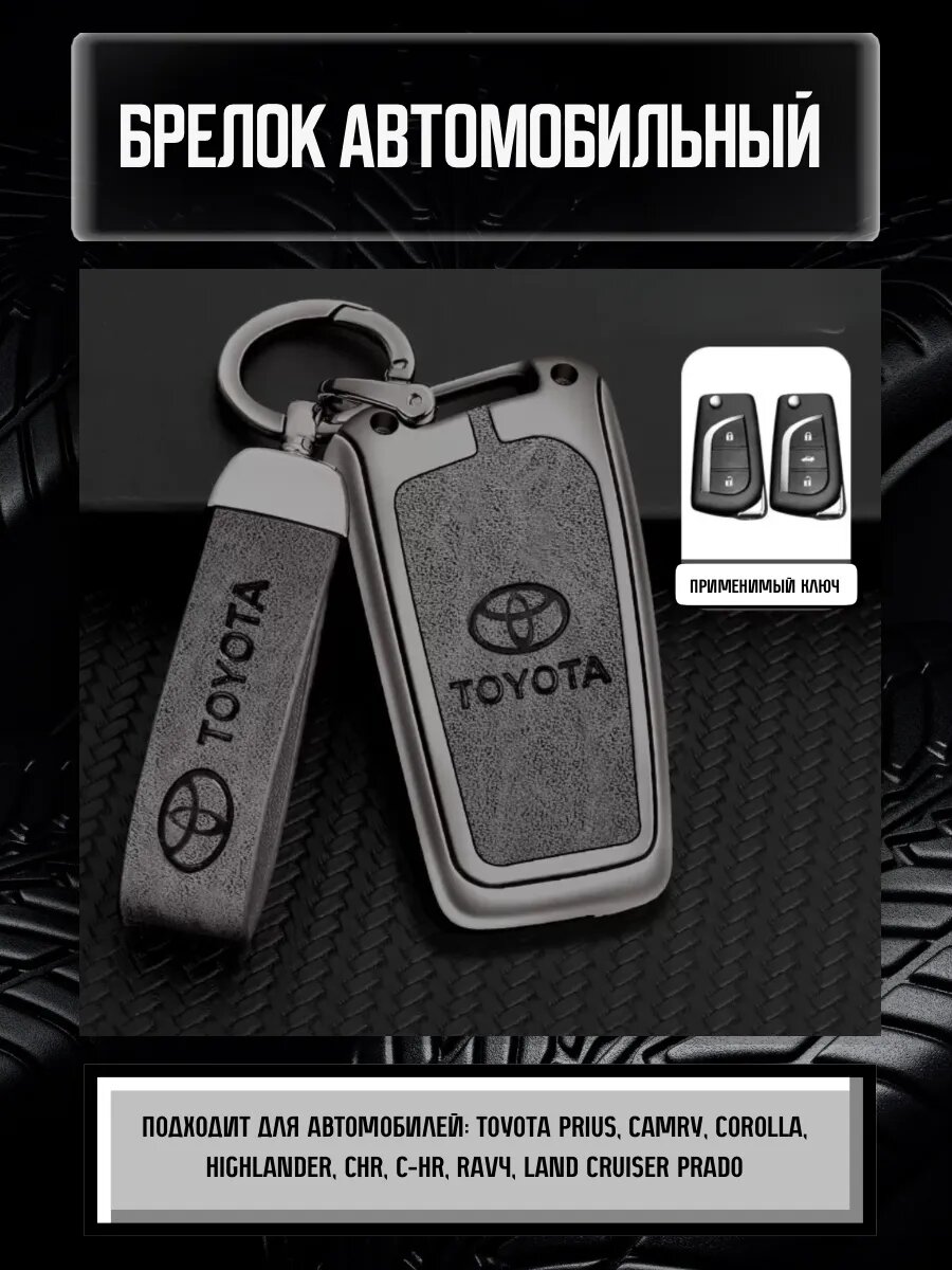 Эксклюзивный стильный металлический чехол для автомобильного ключа марки Тойота. Подходит для ключей автомобиля моделей: Toyota Prius, Camry, Corolla, Highlander, CHR, C-HR, RAV4, Land Cruiser Prado. Противоударный чехол для автомобильного ключа защитит от повреждений и идеально дополнит стиль, красоту Вашего автомобиля. Это качественный, функциональный, практичный чехол из цинкового сплава и экокожи, который предотвращает царапины, повреждения, потертости при хранении или ношении ключа. Уникальный отпечаток 3D-логотипа марки автомобиля на кожаной накладке и ремешке. Благодаря качественной отделке чехол приятно лежит в руке и не скользит. Ключ в брелок легко устанавливается.