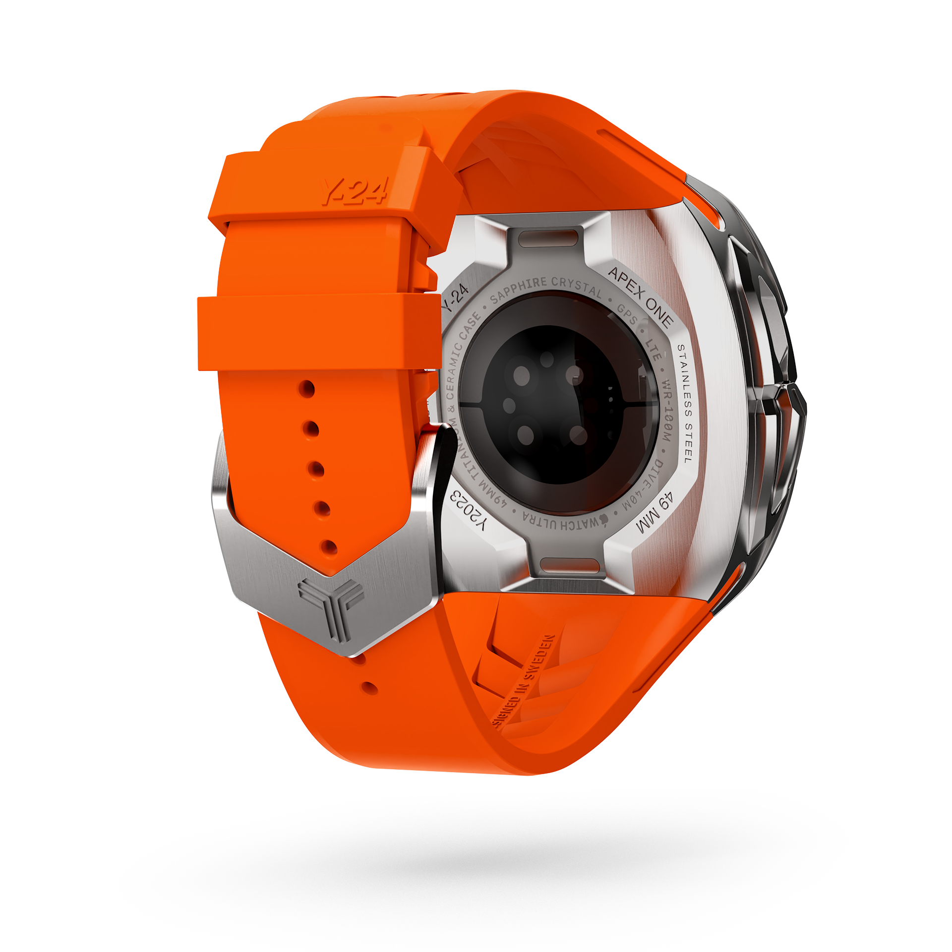 Купить Корпус чехол для часов Y24 для Apple Watch Series Ultra, Ultra 2; 49mm, нержавеющая сталь / резина, стальной / оранжевый с доставкой по всей России.