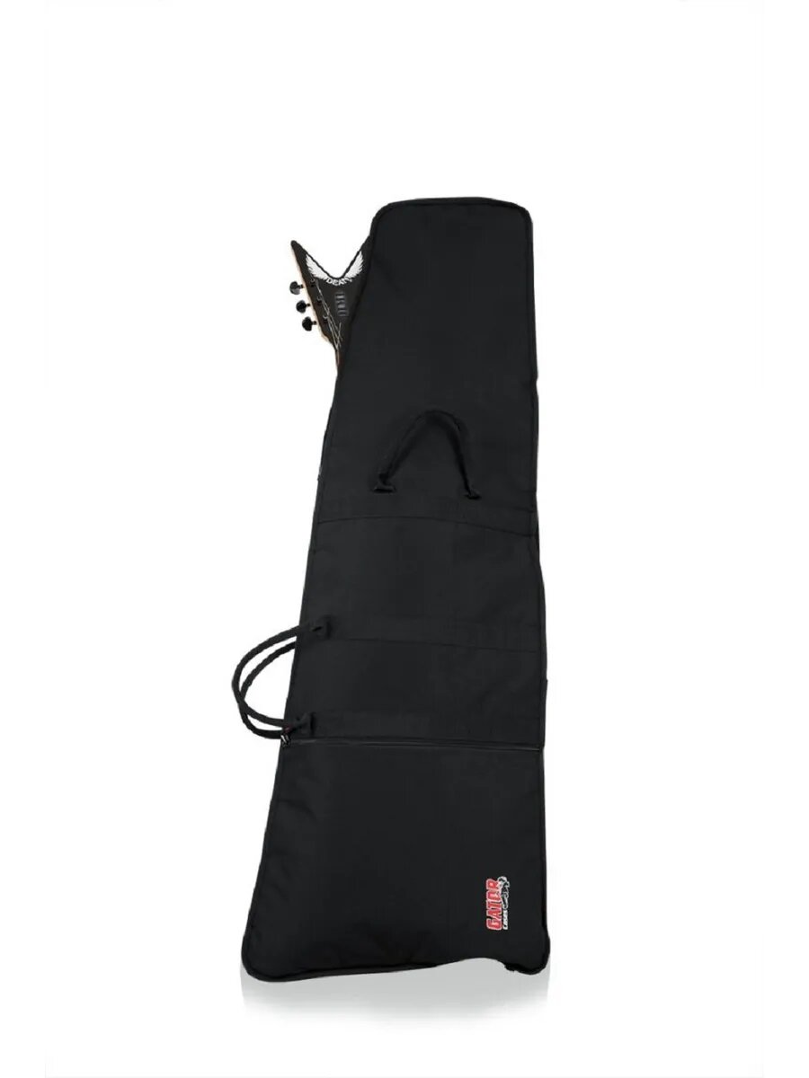 Чехол для гитар нетипичной формы - Flying V, Explorer, Warlock и т. д. Нейлоновая конструкция с антиударной проставкой 10 мм Дополнительно - наплечный ремень и внешний карман. Размеры гитары Общая длина - 1206,5 мм Длина гитарного корпуса - 635 мм Толщина корпуса - 101,6 мм Ширина макс. - 469,9 мм Ширина мин. - 342,9 мм Вес - 1 кг