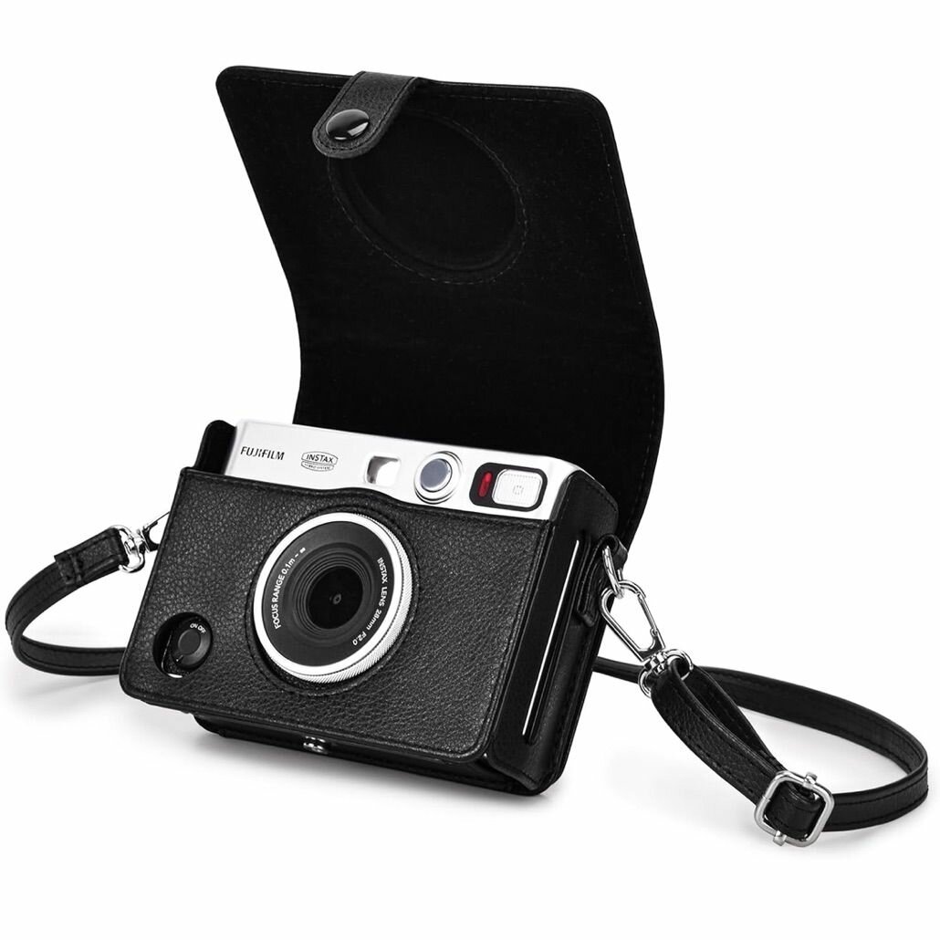 Сумка-чехол с наплечным ремнём для Fujifilm Instax Mini EVO. Чехол из плотного кожзама надёжно защитит камеру от внешней среды, а благодаря ремню – фотоаппарат можно будет носить на шее или через плечо. Аксессуар выполнен специально для модели Instax Mini EVO – плотно облегает корпус камеры, а благодаря специальному вырезу для объектива и всех кнопок – камеру не нужно вынимать из сумки каждый раз, чтобы сделать снимок. Достаточно просто откинуть верхнюю крышку. Также в чехол можно складывать фотографии, чтобы они не помялись и не поцарапались.