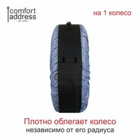 - плотно облегает колесо независимо от его радиуса, благодаря застежкам на липучках и вшитым резинкам по краям;