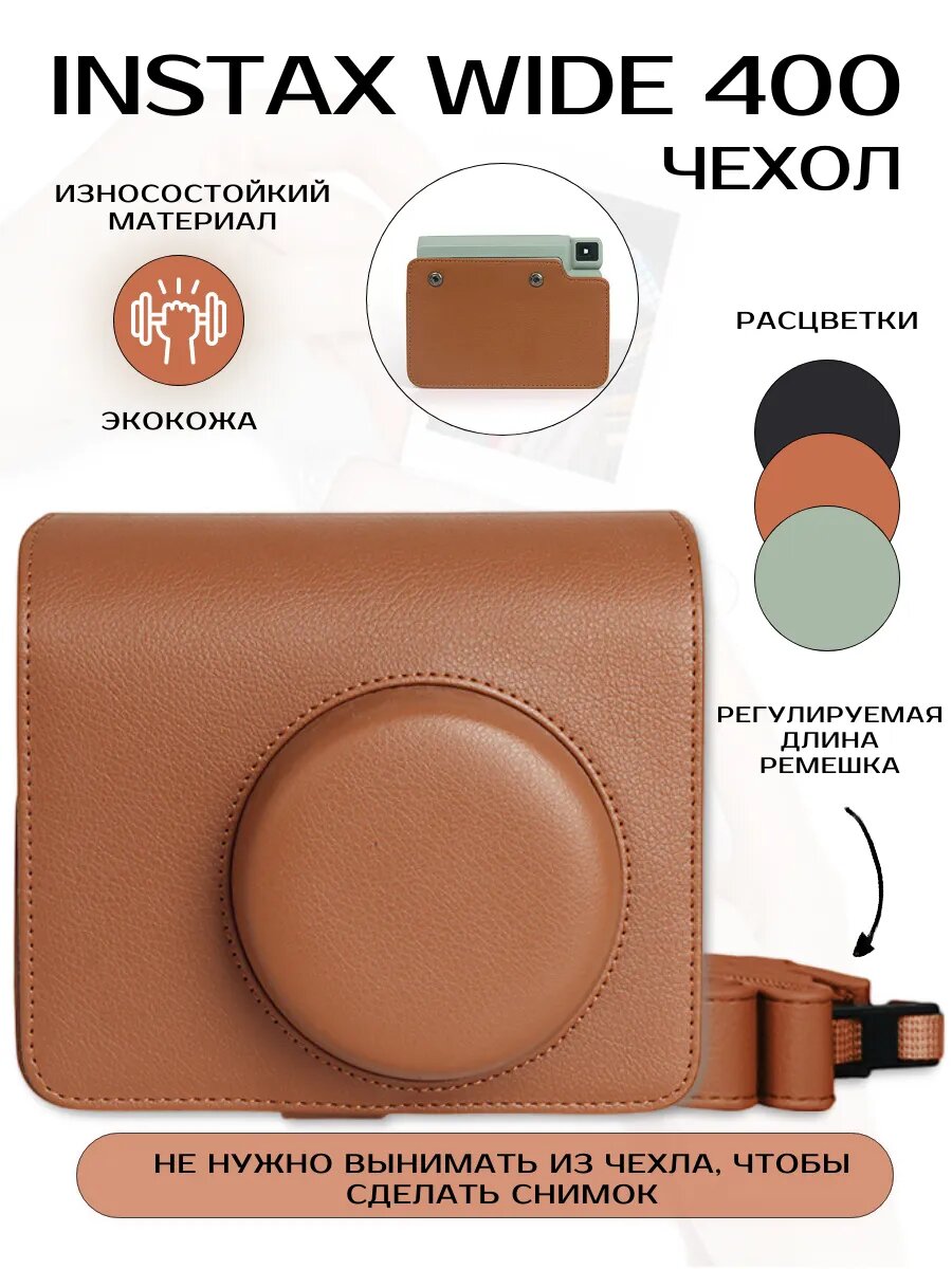 Коричневый чехол из искусственной кожи для фотоаппарата Instax Wide 400: стильный и надёжный защитник вашей камеры. Этот чехол изготовлен из высококачественной искусственной кожи, которая обеспечивает стильный и винтажный вид. Он имеет удобный плечевой ремень для комфортной переноски и дополнительную защиту от царапин, пыли и ударов. Коричневый чехол идеально подходит для тех, кто ценит неподвластный времени и изысканный внешний вид.