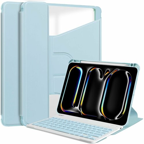 • Беспроводная клавиатура примагничивается к чехлу. Вы также можете отсоединить ее и использовать в отдалении от устройства либо привязать ее по Bluetooth как к компьютеру, так и к телефону (включая iPhone). Радиус действия - до 10 метров