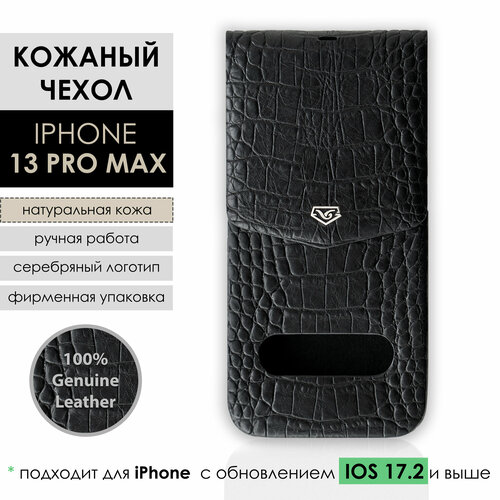 Купить Чехол для iPhone 13 Pro Max / Чехол на Айфон, кожа с тиснением под каймана, черный с доставкой по всей России.