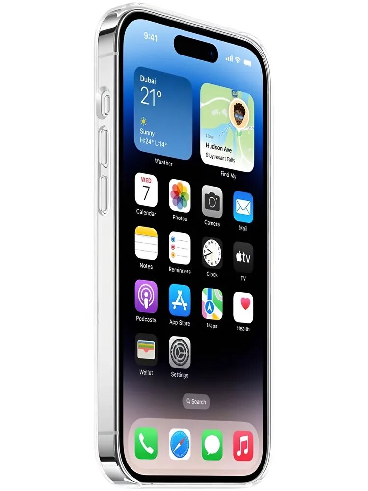 Аксессуар выполнен из прочного поликарбоната – это лёгкий и гибкий материал, который полностью прилегает ко всем изгибам смартфона и защищает его от различных мелких повреждений, пыли и царапин. Клип-кейс совместим с беспроводной зарядкой MagSafe – просто поместите устройство на поверхность чехла, и оно тут же примагнититься к нему. Вы сможете пользоваться смартфоном как обычно, пока его батарея будет заряжаться.