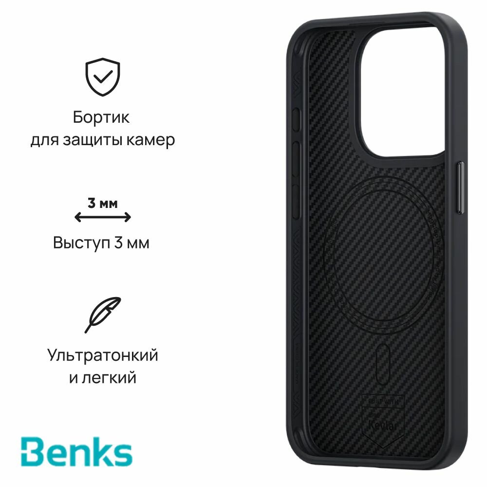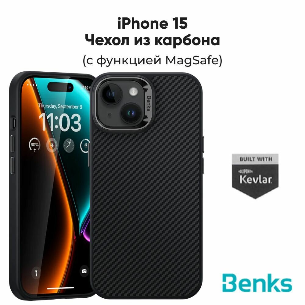 Премиальный защитный чехол Benks MagClap ArmorPro для iPhone 15, изготовленный из волокна DuPont Kevlar 600D, обеспечивает надежную защиту вашего устройства в минималистическом стиле.