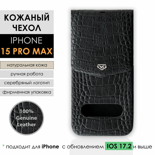 Купить Чехол для iPhone 15 Pro Max / Чехол на Айфон, кожа с тиснением под каймана, черный с доставкой по всей России.