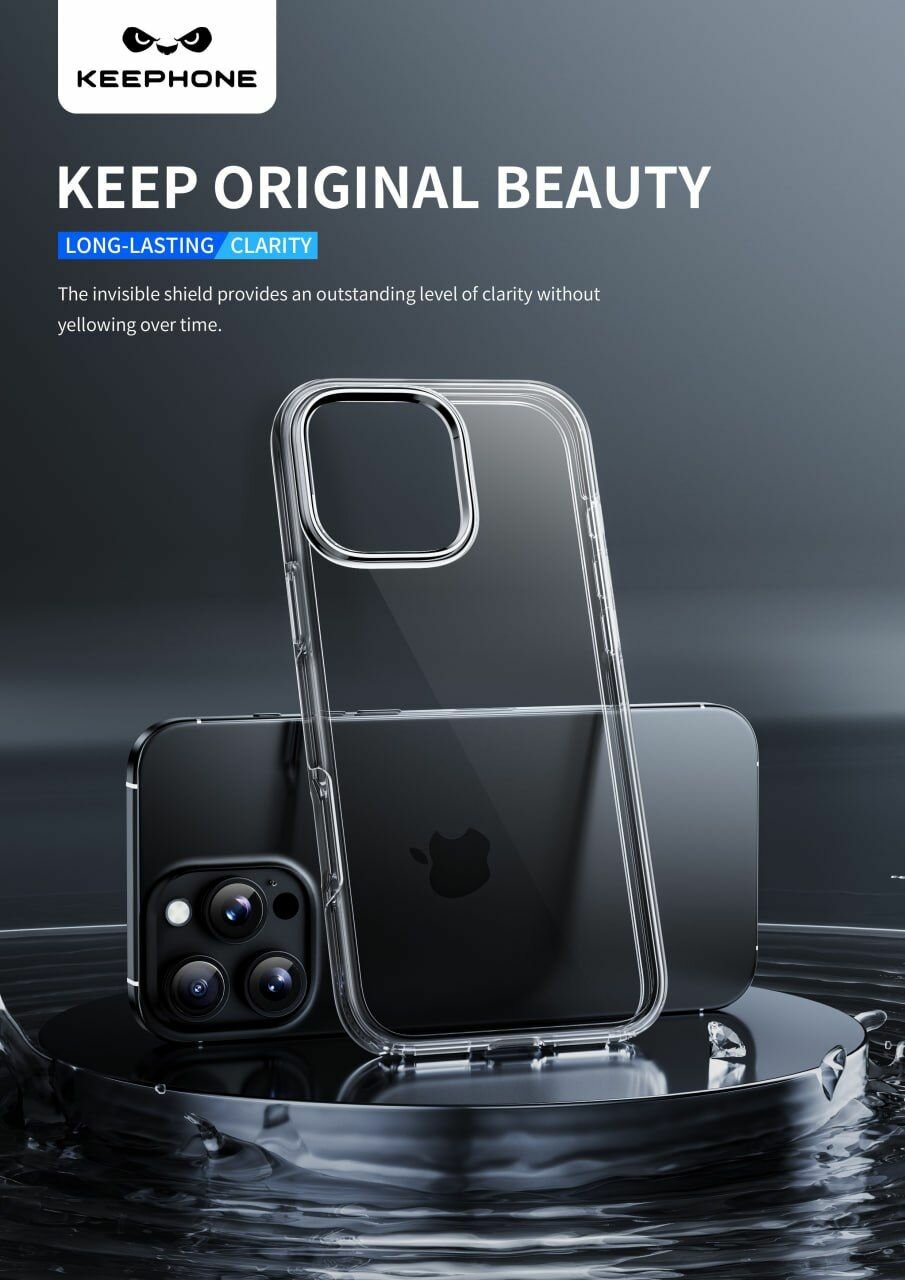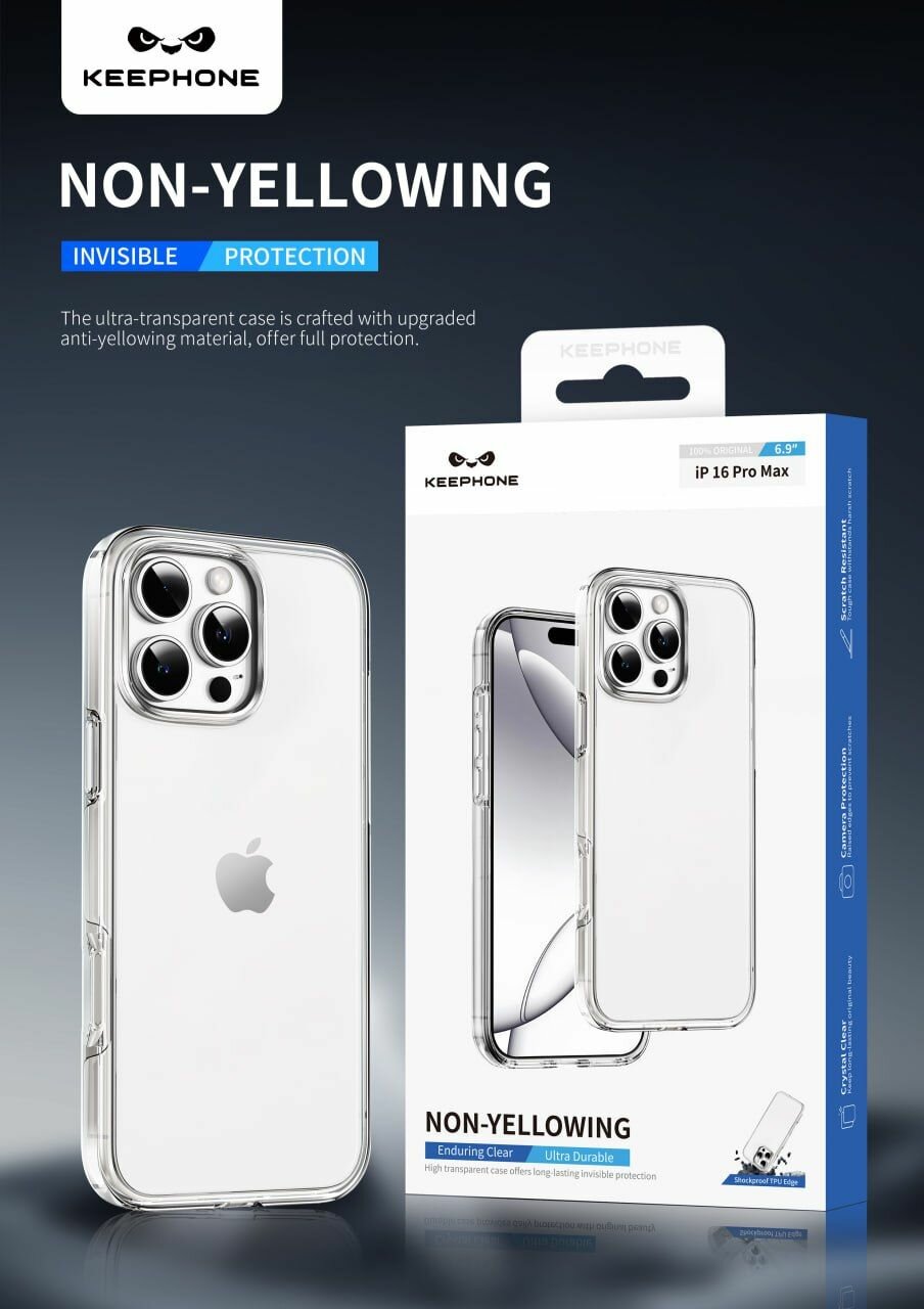 Чехол для iPhone 16 Pro Max Keephone Case - это идеальное решение для защиты вашего устройства. Прозрачный противоударный чехол обеспечит надежную защиту вашего Apple iPhone 16 Pro Max от царапин, ударов и других повреждений. Благодаря своему элегантному дизайну он подчеркнет стиль вашего телефона, не скрывая его оригинальный вид.
