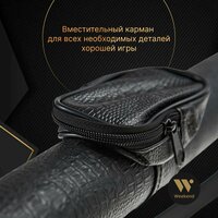 для двухсоставного кия, карман для мелочей, на молнии, отделение для мела, плечевой ремень