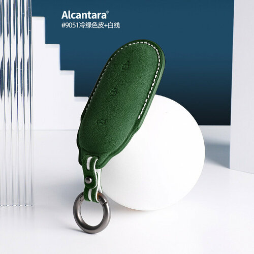 Чехол для ключа Lixiang L7 L8 L9 изготовлен из итальянской алькантары зеленого цвета, что придает ему элегантный и стильный вид. Матовая поверхность чехла обеспечивает комфортное использование и предотвращает скольжение ключа в руке.