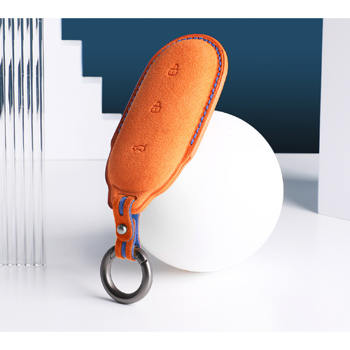Чехол для ключа Lixiang L7 L8 L9 изготовлен из итальянской алькантары, что обеспечивает не только стильный внешний вид, но и долговечность. Оранжевая поверхность с матовым покрытием придает чехлу элегантный и современный вид.