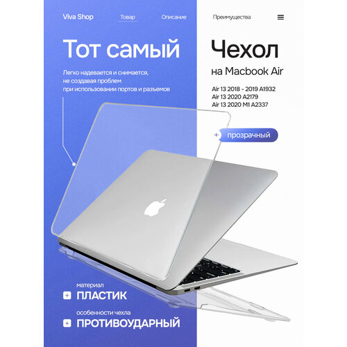 Пластиковая накладка для Macbook Air 13 2020 - 2018 станет отличным выбором для ежедневной защиты ноутбука.
