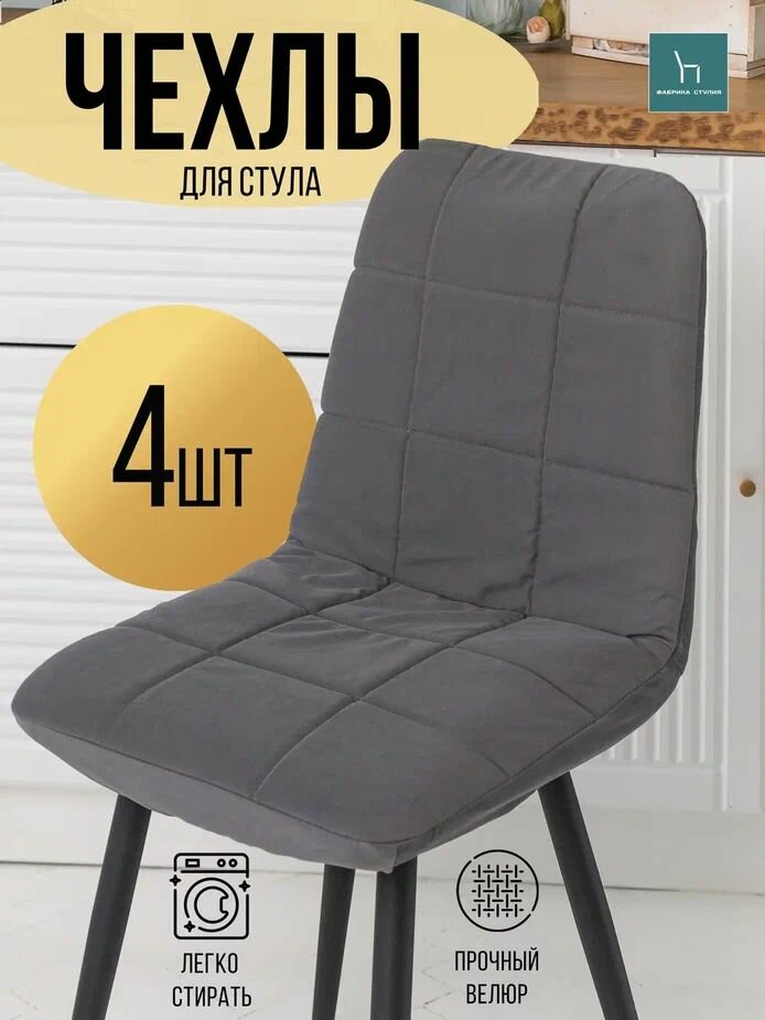 Чехол для мебели Чили из велюра, тёмно-серый прострочка квадрат 4 шт: сравнение цен, характеристики, фото, актуальное наличие и цены.