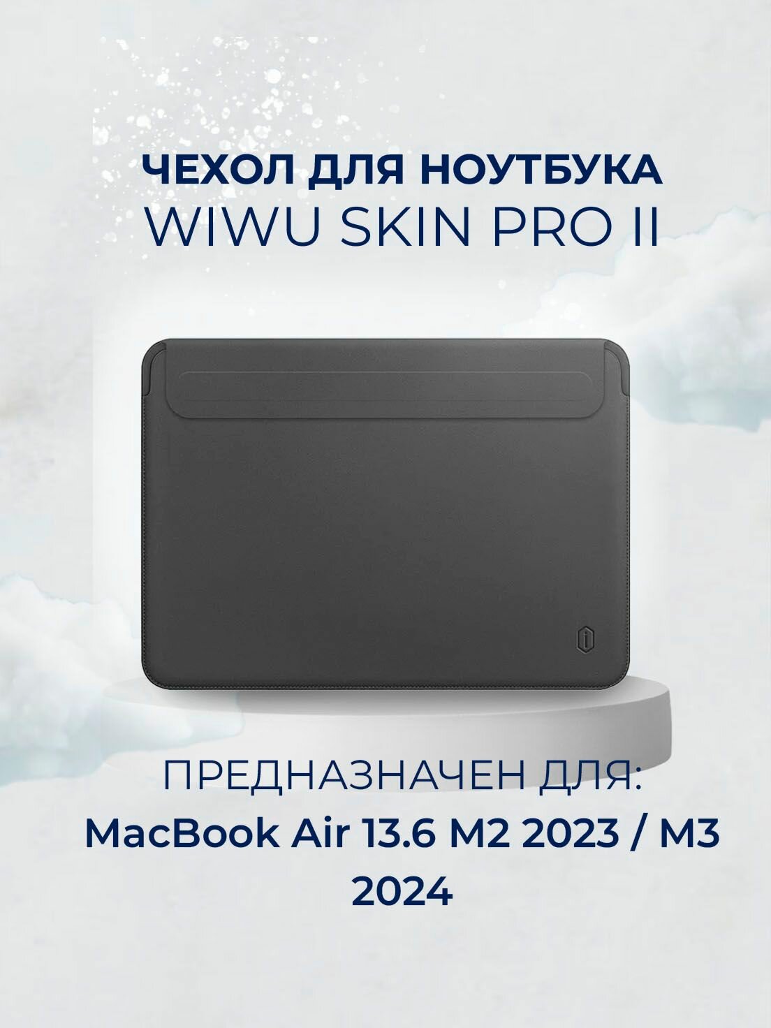 Чехол из экокожи для MacBook Air 13.6 М2 M3 M4 / Чехол с магнитной застежкой WiWU Skin Pro 2 для Макбук Аир 13.6 2022 2024 2025 (A2681, A3113, A3240), Цвет: Серый: сравнение цен, характеристики, фото, актуальное наличие и цены.