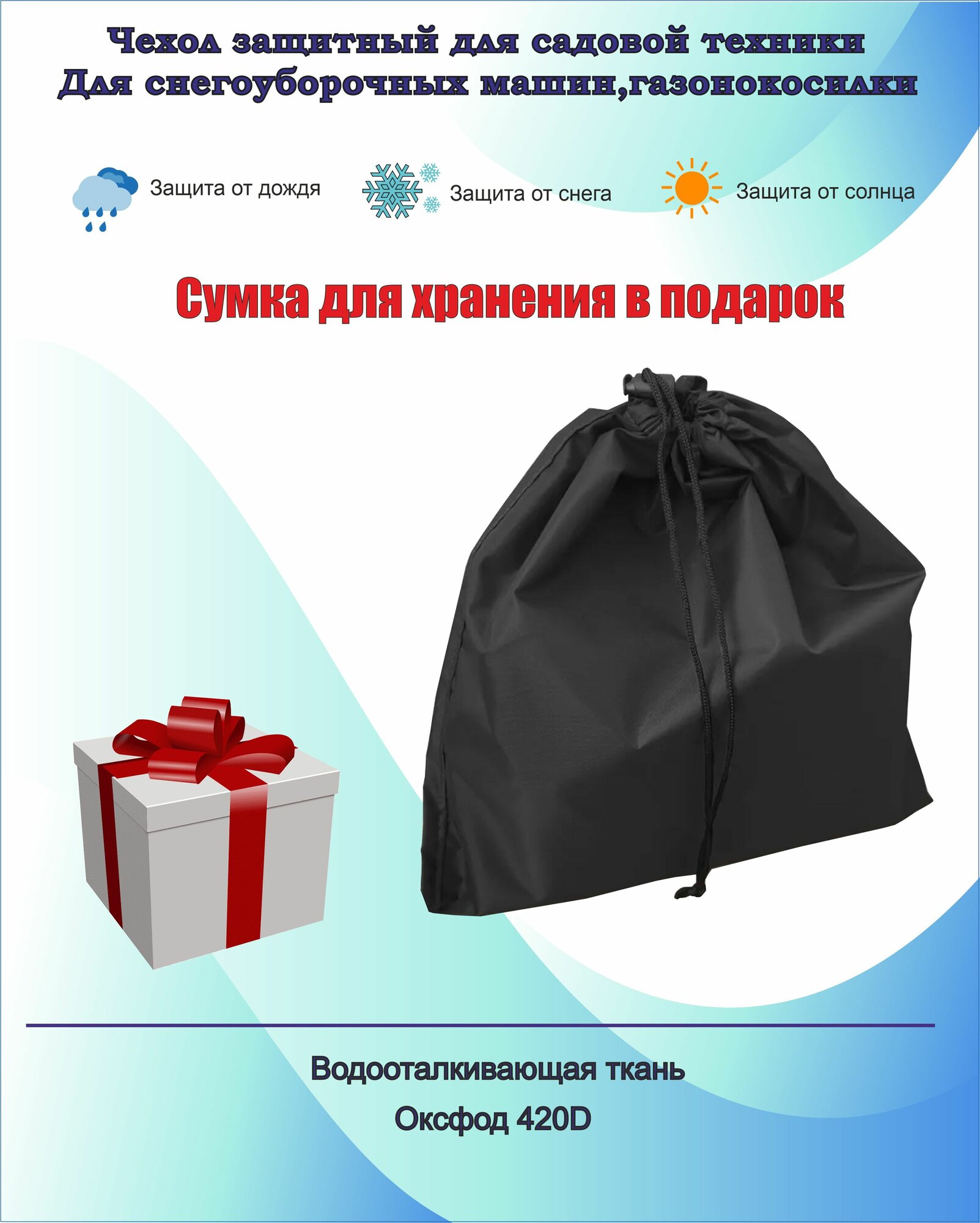 Чехол для снегоуборщика размером 1200x800x1150 мм (ДxШxВ) служит полезным и практичным дополнением, которое обеспечивает безопасное хранение и защиту садового оборудования от различных погодных условий (снега, грязи, пыли и прямых солнечных лучей). Это помогает продлить срок службы техники. Чехол просто и быстро снимается и надевается, а специальный шнур с фиксатором в нижней части предотвращает его соскальзывание с оборудования во время хранения.