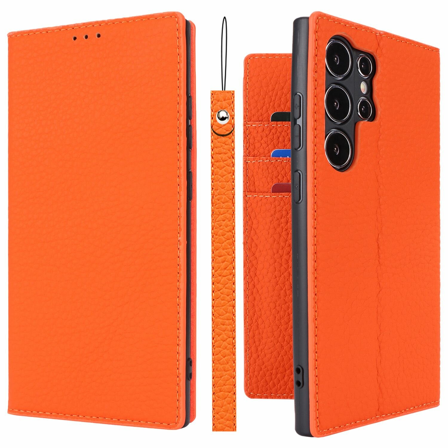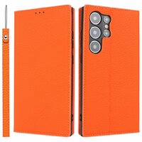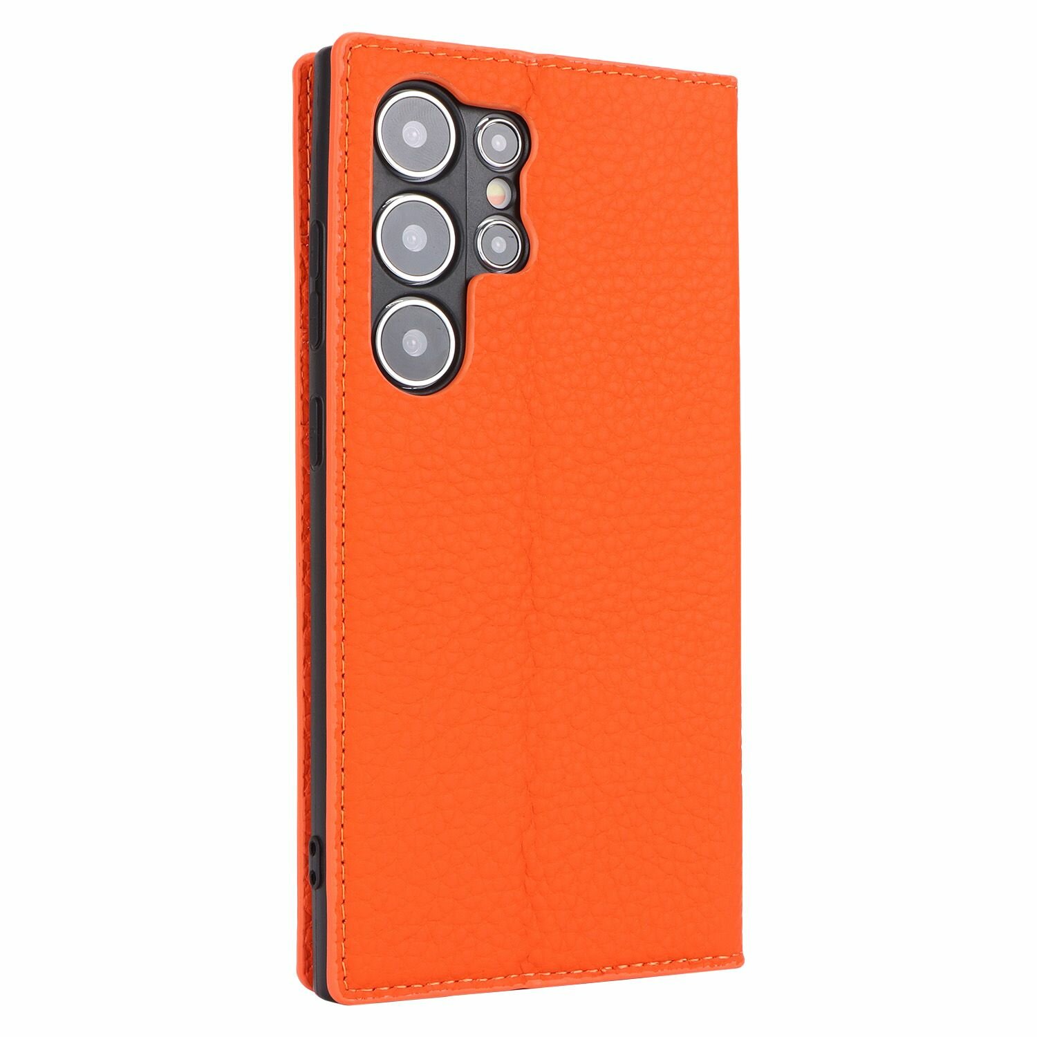 Чехол для Samsung S24 Ultra кожаная книжка оранжевый