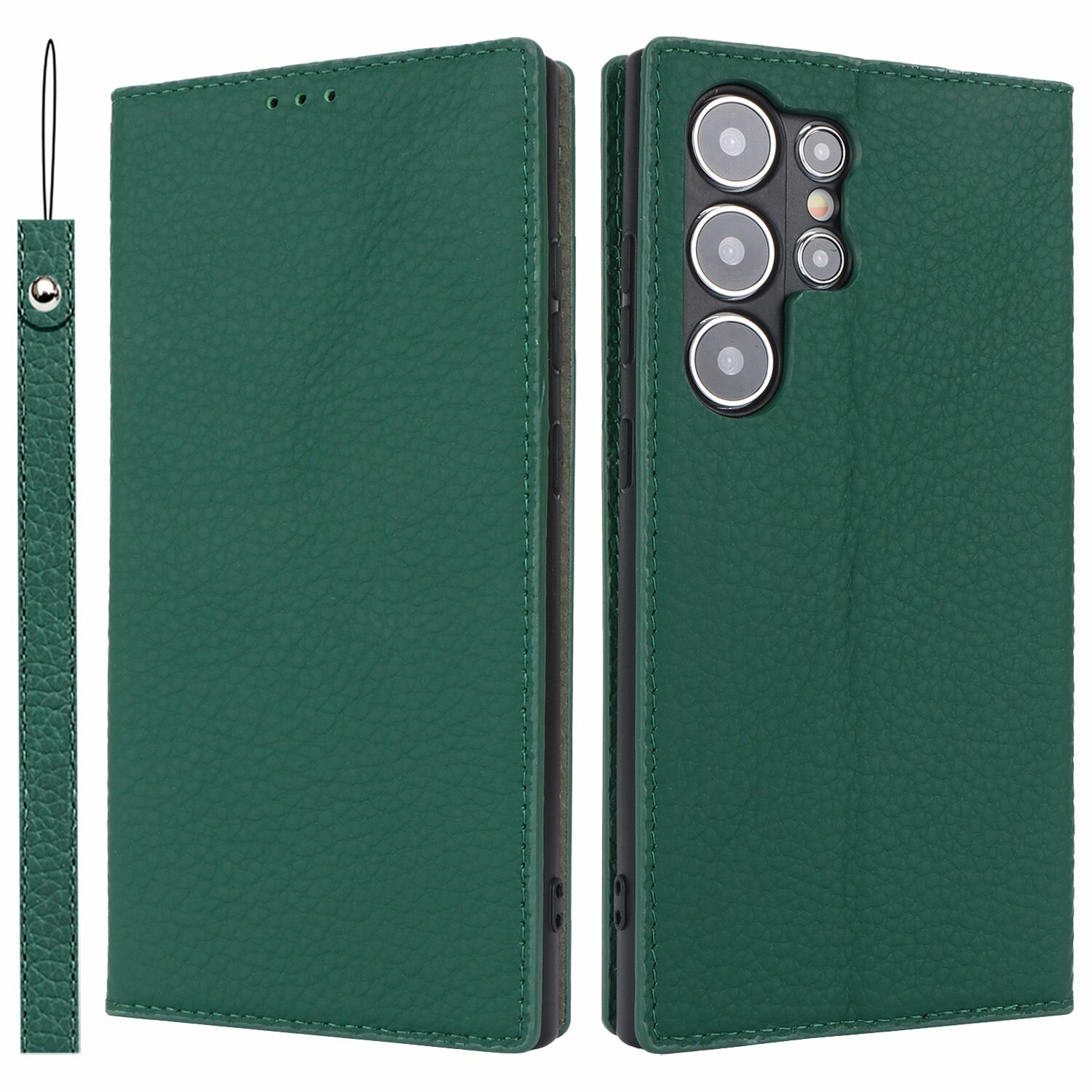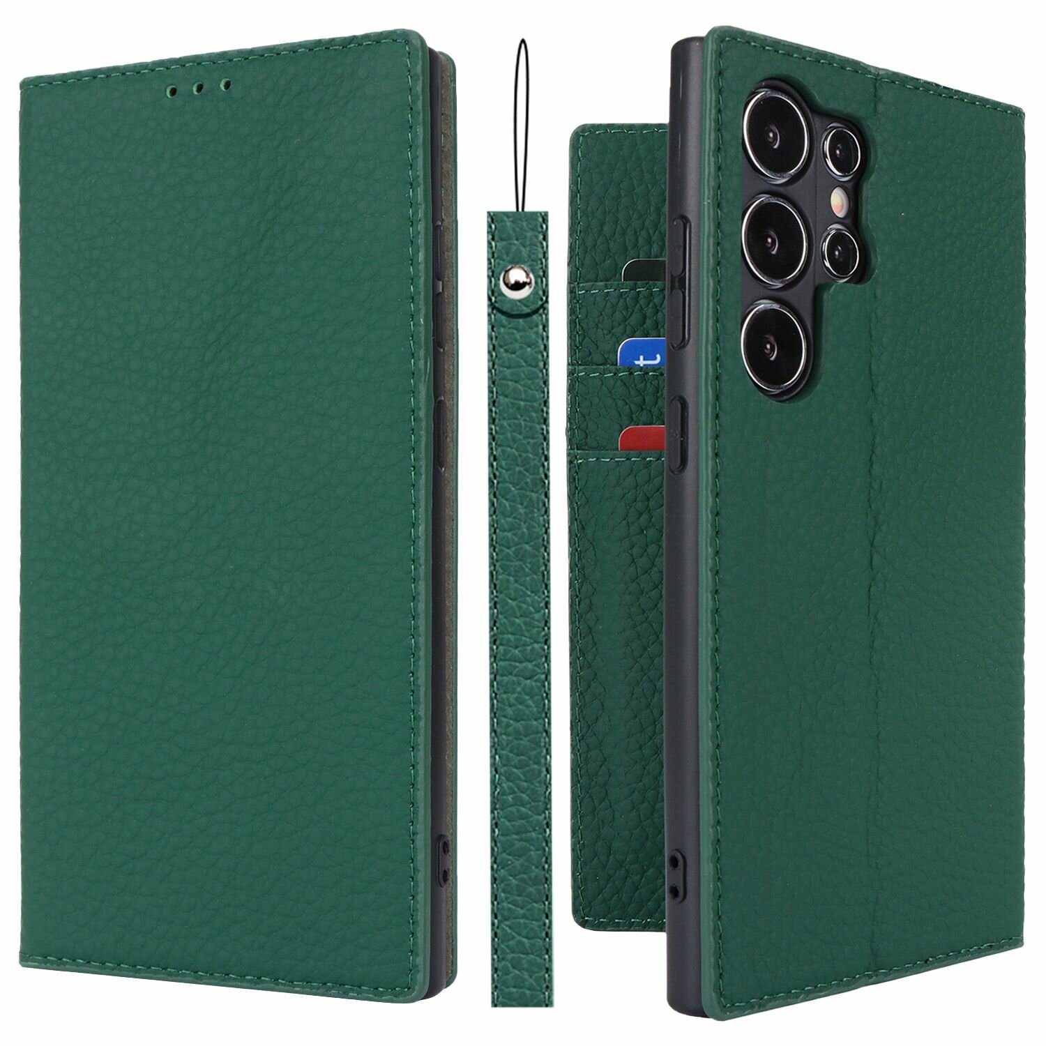 Чехол для Samsung S24 Ultra кожаная книжка зеленый