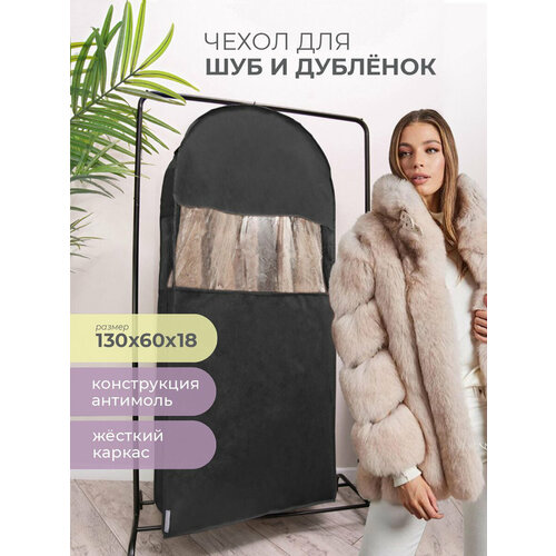 Чехол для шубы объемный на молнии 130 х 60 х 18 см черный 1 шт. Особенности модели чехла: 1) объемный чехол подходит для хранения шуб, дубленок, пальто 2) верхняя жесткая пластиковая вставка чехла предохраняет воротник шубы от заломов 3) имеет узкое отверстие для вешалки против проникновения насекомых внутрь 4) дышащий материал спанбонд защищает от пыли, солнца 5) через прозрачную вставку видно содержимое 6) молния сбоку упрощает процесс использования 7) однотонный чехол впишется в любой интерьер 8) можно гладить при t до 60 С и стирать вручную