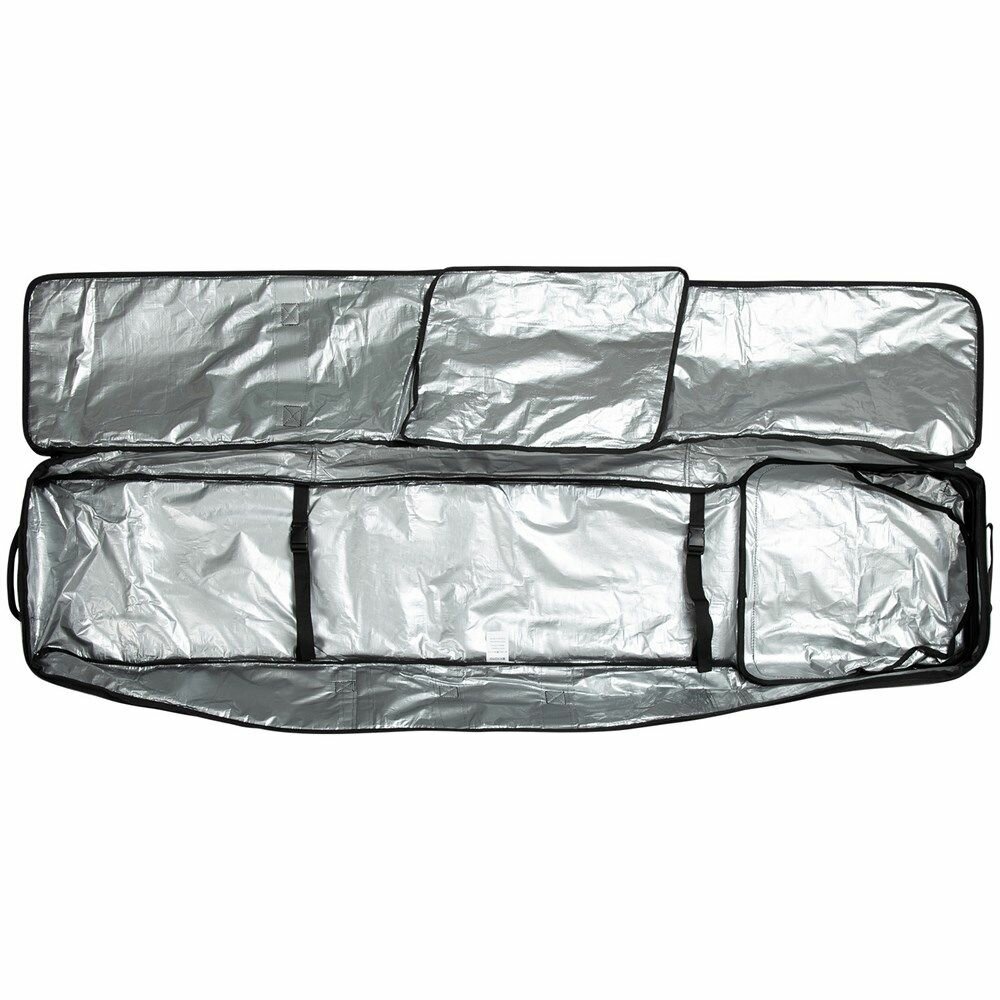 Особенности: Чехол для сноуборда Основное отделение на молнии YKK с двумя бегунками Внешний карман на молнии Вмещает в себя 2 доски, пару ботинок и одежду Уплотненный материал по всему периметру чехла для защиты оборудования Усиленная водостойкая подкладка Усиленное дно Две торцевые ручки для удобства транспортировки Съёмный регулируемый плечевой ремень Внутренние компрессионные ремни не дают снаряжению перемещаться по чехлу Прочный материал Oxford Размер 158 см: 160 х 33 х 20 см. / вес 1,7 кг. Размер 168 см: 170 х 33 х 20 см. / вес 1,8 кг.