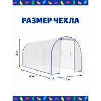 Армированная пленка отлично пропускает свет, обладает хорошей изоляцией, позволяет растениям не пересыхать. Имеет защиту от УФ-излучения. Тент для парника герметично сшит, поэтому отлично держит тепло и защищает рассаду от непогоды. Чехол полностью готов к эксплуатации, Вам остается только накинуть его на каркас и зафиксировать с помощью шнуров и хомутов. Также легко его и снять на зиму. Отличная альтернатива теплицы из поликарбоната!