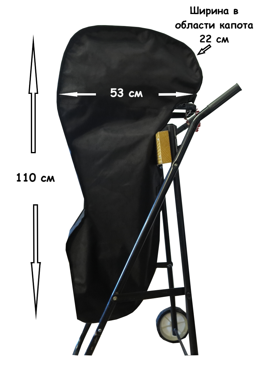Чехол транспортировочный для лодочных моторов от 4 до 9,8 л. с. Предназначен для защиты лодочного мотора при его транспортировке на лодочном прицепе от повреждений. Изготовлен из прочной ткани ПВХ Оксфорд 1680Д. Плотность материала 530 г/м2. Размеры изделия 110х53х22 см. Цвет чёрный.