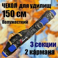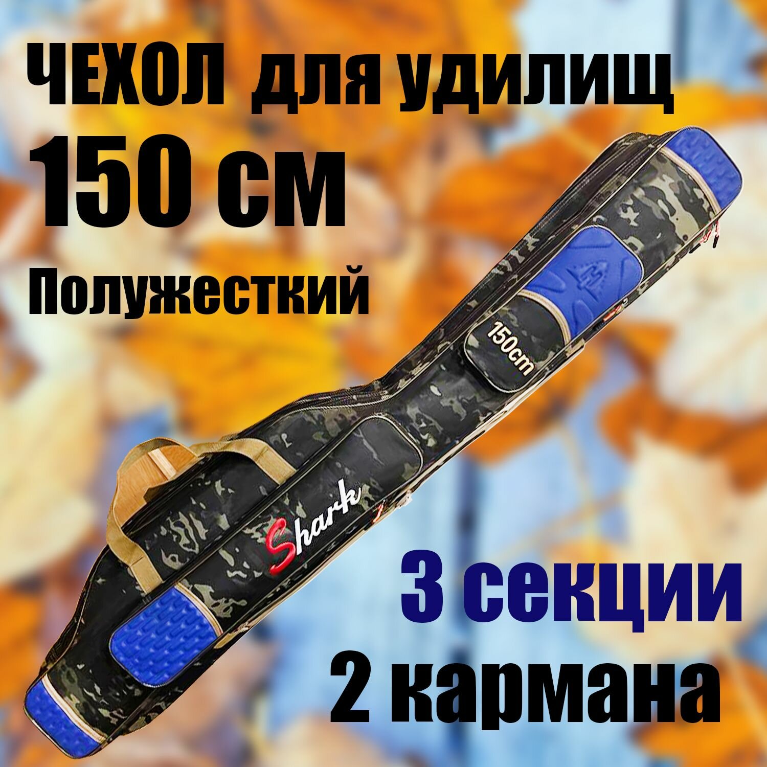 Чехол для удочек и удилищ 150 см полужесткий под катушку 3 секции, 2 кармана, черно-синий: сравнение цен, характеристики, фото, актуальное наличие и цены.