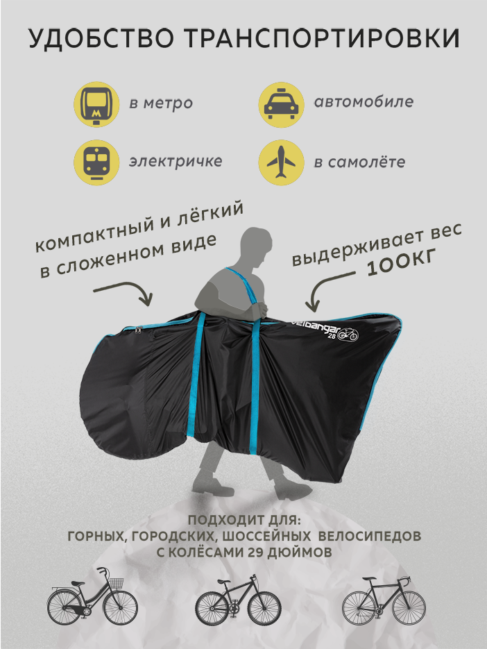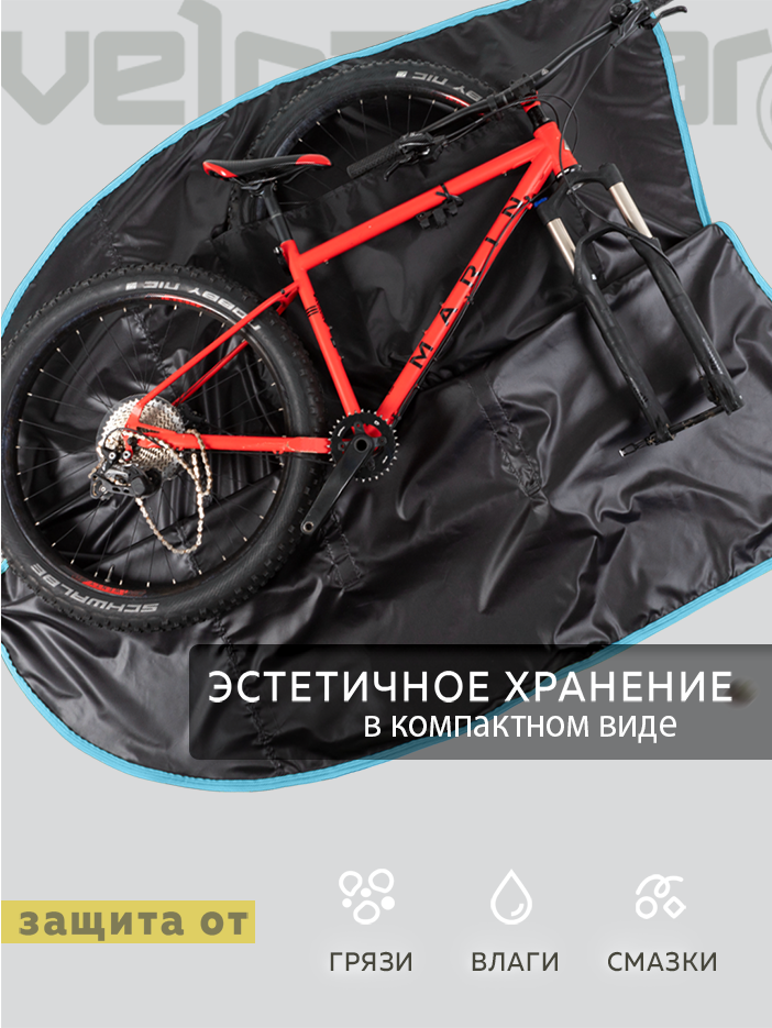 Чехол для велосипеда водонепроницаемый, для хранения и перевозки, защитный 190*105 см Veloangar V28K (черный с голубыми лямками и молнией): сравнение цен, характеристики, фото, актуальное наличие и цены.