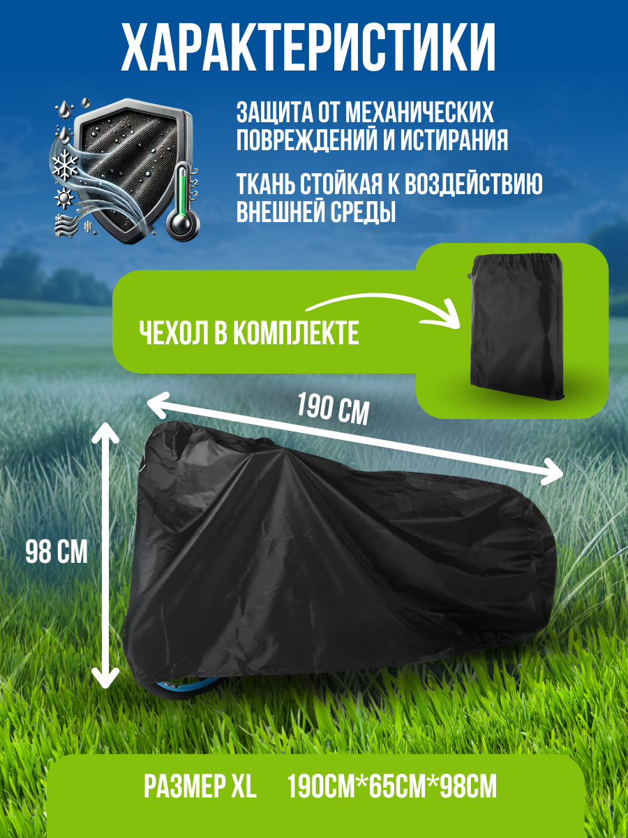 Этот прочный и надежный защитный чехол - настоящий спаситель для твоего велосипеда, мотоцикла и других транспортных средств! Свернувшись в оксфордский кокон, твой двухколесный друг будет защищен от непогоды и других негативных воздействий.
