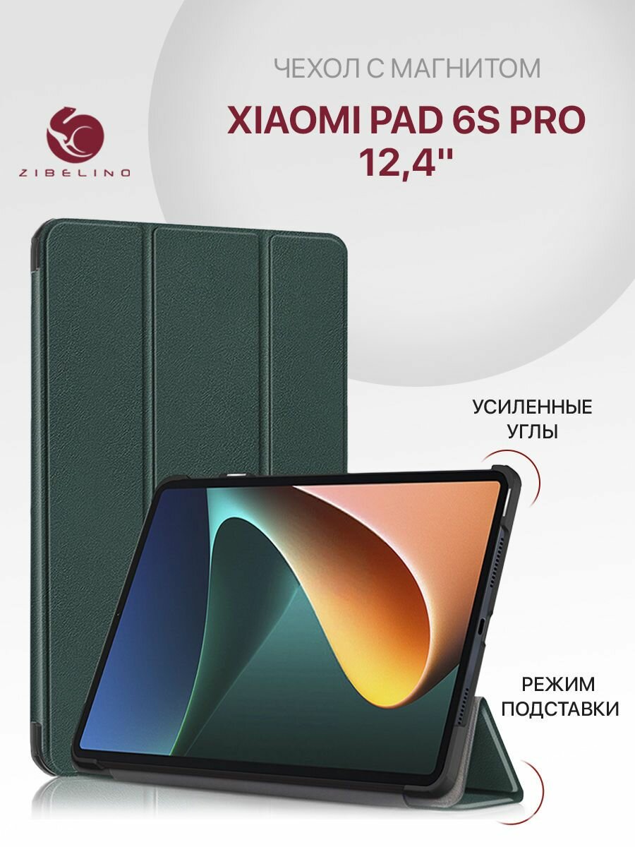 Чехол для Xiaomi Pad 6s Pro 12.4" с магнитом, темно-зеленый